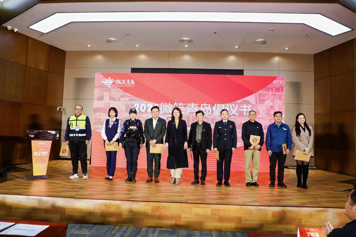 作为此次活动的重磅环节,青岛大学口腔医学院院长袁昌青,青岛市生态环境局城阳分局生态环境监控中心苏艳,青岛港国际集装箱发展有限公司副总经理徐珦,小麦岛景区退休保安蓝正信,城市救人“专业户”杨新生,青岛市公安局青鸾特巡队,浦口路、沈阳支路泊车管理员张国财,青岛城市照明有限公司运维工作负责人李亮,青岛联通安徽路奥运主题营业厅王明阳,中信银行青岛分行运营管理部委派会计经理王慧,王家村社区志愿者团队队长王晓卫等十余位微笑人物共同登台宣读《2025微笑青岛倡议书》,呼吁全社会共同传递微笑、共建文明青岛。